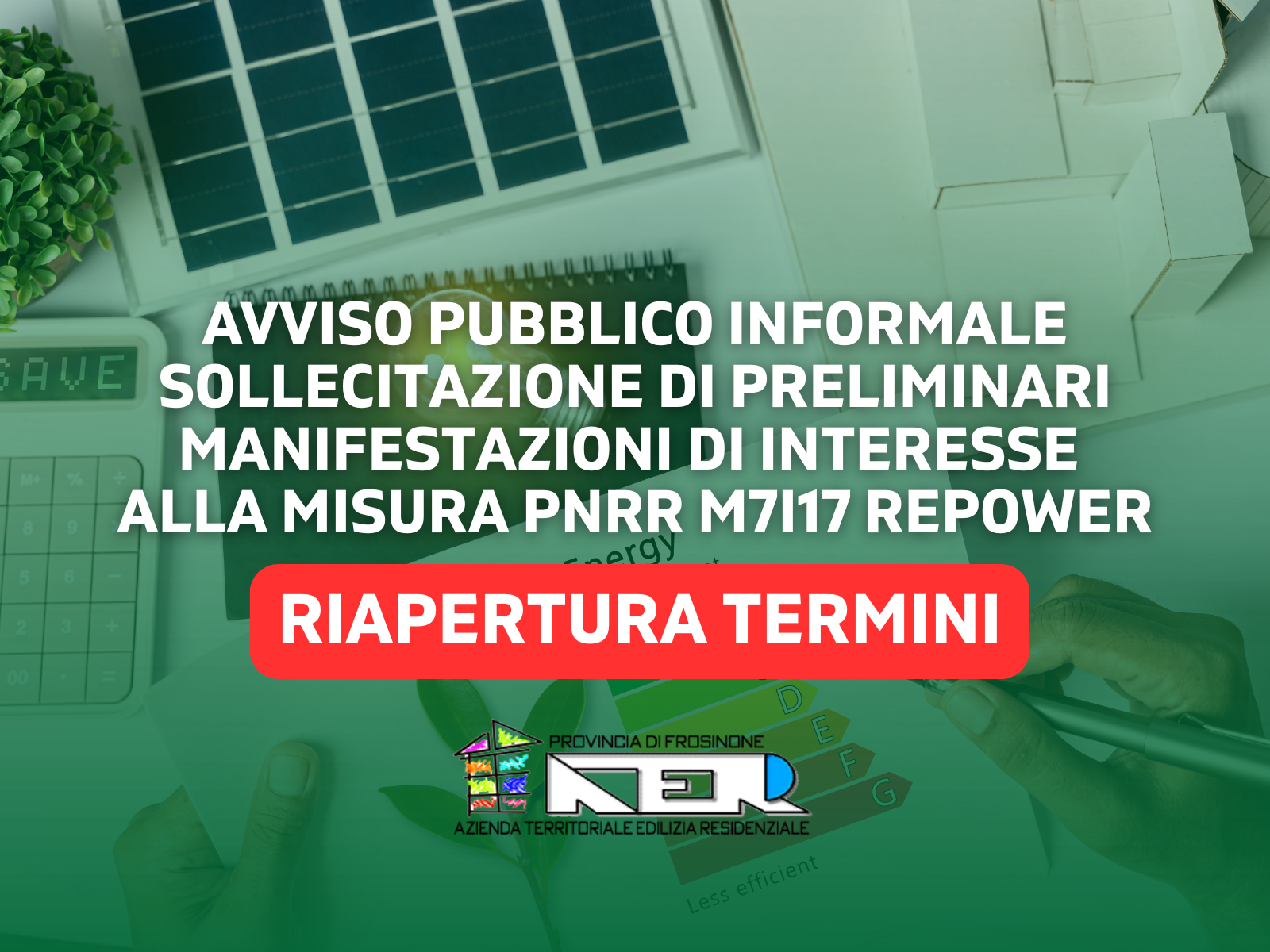 AVVISO PUBBLICO INFORMALE SOLLECITAZIONE DI PRELIMINARI MANIFESTAZIONI DI INTERESSE RELATIVO ALLA MISURA PNRR M7I17 REPOWER